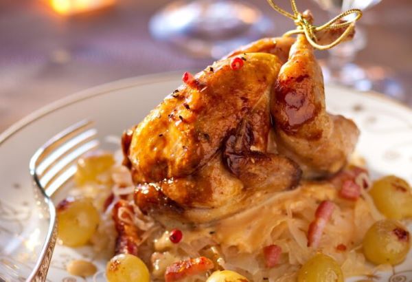 21.02.2025| Es muss nicht Rebhuhn oder Wachtel sein - Maispoularde ist ganz okay|Gebratenes Wildgeflügel mit Champagnerkraut, ein Lieblingsgericht von King Charles III| "Perdrix à la Souvarov" gehörte einst zum Standard-Repertoire des Grand Hotels. Manchmal ist es Zeit, sich wieder auf diese Klassiker zu besinnen - zumal hervorragende Produkte auf dem Markt zu finden sind, etwa Schöni Sauerkraut, roh oder gekocht. Mehr...
